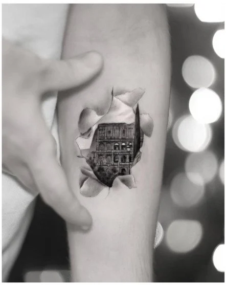 Not every Rome-inspired tattoo takes its inspiration from myths. The City of Rome is equally inspiring, with its iconic landmarks like the Colosseum, the Pantheon, and the Roman Forum.