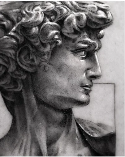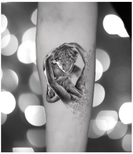 A client came to us with deep admiration for Michelangelo’s David. But she didn’t want a basic tattoo. She wanted it to reflect her own life story. During her session, we asked about her life, challenges, and achievements, and from those conversations, the design began to evolve.